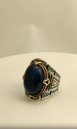 La pietra blu profonda cattura la luce con riflessi regali, evocando calma, forza interiore e saggezza.